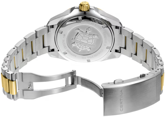 В XXI-м веке к часам предъявляются высокие требования. Дорогие наручные часы должны быть лучшими во всех отношениях – с точки зрения стиля, надежности и точности хода. Новая модель популярной коллекции DS Action Diver швейцарской марки Certina несомненно станет победителем этой гонки. Дайверские часы диаметром 43 мм отличаются классическим вневременным дизайном, водонепроницаемостью до 300 м и современным автоматическим калибром с пружиной, обладающей антимагнитными свойствами. Для корпуса, браслетов и застежек своих часов марка Certina использует нержавеющую сталь 316L, отличающуюся повышенной износостойкостью, устойчивостью к коррозии и гигиеничностью. В стали содержится совсем небольшое количество никеля, поэтому этот материал не вызывает аллергии при носке. Керамика, используемая в часовом искусстве, обжигается при температуре более 900 °C, что обеспечивает ее высокую прочность. Керамические безели, кабюшоны и детали браслетов марки Certina имеют не только красивый внешний вид, но обладают устойчивостью к царапинам, гипоаллергенностью и способностью долгое время сохранять первоначальную яркость и блеск. Super-LumiNova (SLN) представляет собой cветящийся материал с фосфоресцирующими свойствами. В темноте SLN типа BG W9, который использует Certina, испускает свет в виде голубого мерцания. SLN не вредит здоровью и используется для нанесения на стрелки, индексы и безели. В темноте он через некоторое время теряет свои фосфоресцирующие свойства, но они автоматически восстанавливаются на свету. Сапфировое стекло состоит из порошка оксида алюминия (Al2O3), раскаленного до 2.000 °C. Получаемые в результате сапфировые пласты нарезаются на тонкие пластины, им придают требуемую форму и полируют. Сапфир абсолютно прозрачен, обладает высокой устойчивостью к царапинам и механическим повреждениям. По этим причинам сапфировое стекло стало неотъемлемой деталью концепции DS и используется во всех моделях Certina для защиты циферблата. Вес нетто 205 гр. Стекло сапфировое сдносторонним антибликовым покрытием. Водонепроницаемость до 300 метров. Часы для дайверов, разработанные в соответствии со стандартом ISO 6425:2018, водонепроницаемость до глубины 300 м . Диаметр корпуса 43 мм. Толщина 13.1 мм. Между креплениями 21 мм. Механизм ETA POWERMATIC 80.611 с запасом хода 80 часов и сплавом Nivachron. Запас хода показывает количество времени, которое могут идти механические часы без подзавода. Большинство часов имеют запас хода около 38-42 часов. Powermatic 80, инновационный автоматический калибр Certina имеет запас хода до 80 часов – почти в два раза больше, чем у сопоставимых моделей. Спирали баланса созданы из инновационного титанового сплава. Этот революционный материал был создан при сотрудничестве с компанией Swatch Group и используется лишь ограниченным числом брендов. Пружины Nivachron обладают повышенной устойчивостью к воздействию электромагнитных полей, ударам, старению материалов, экстремальному перепаду температур, выводят часы на совершенно новый уровень точности и обеспечивают долговечность аксессуара. Удлинение для надевания часов на гидрокостюм.