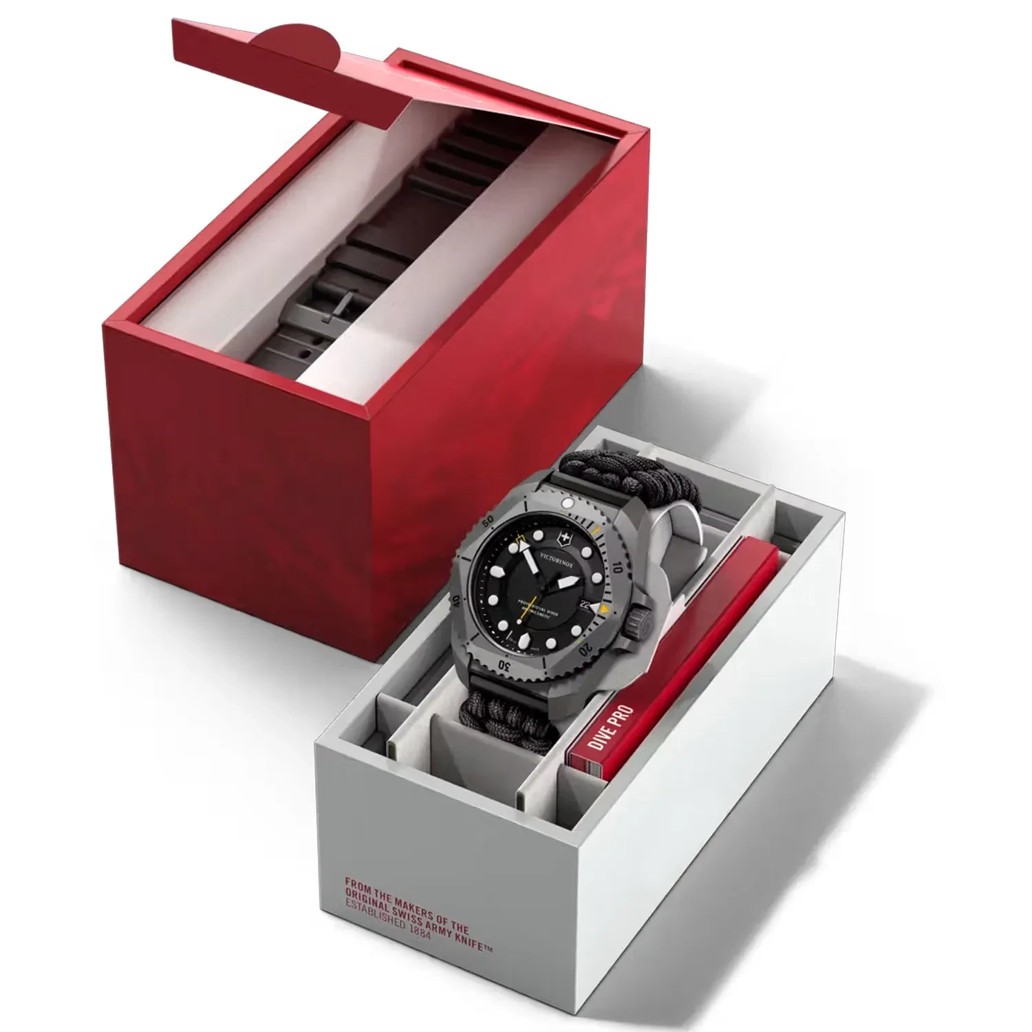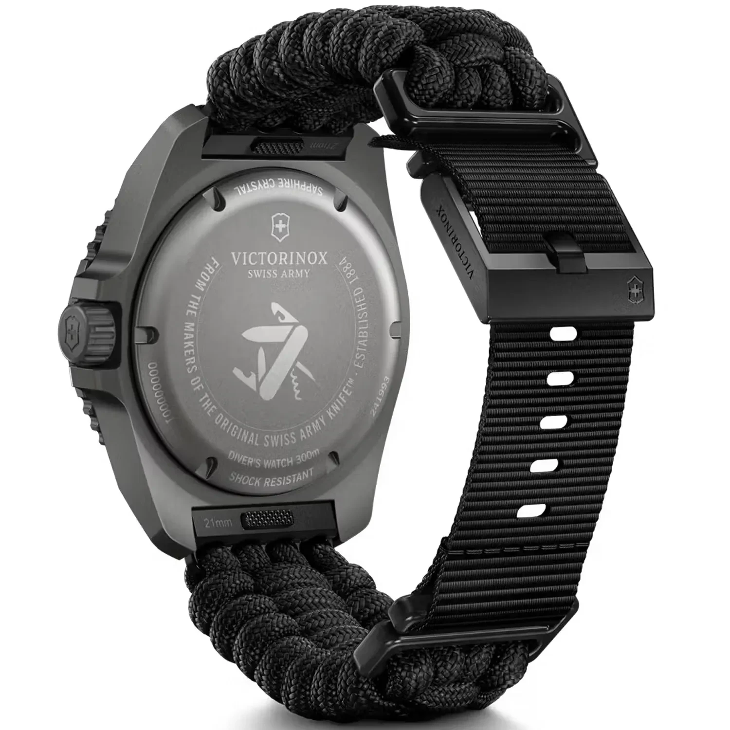 Мужские швейцарские наручные часы Victorinox Swiss Army 241993.1, хронограф, швейцарский кварцевый механизм Ronda 5030.D, индикация даты. Циферблат черного цвета. Титановый корпус, диаметр 43 мм, вращающийся безель с покрытием из сапфирового стекла, устойчивым к воздействию UV-лучей, накладные цифры, накладные индексы, люминесцентное покрытие на стрелках, сапфировое стекло с тройным антибликовым покрытием, водоустойчивость 300 м.